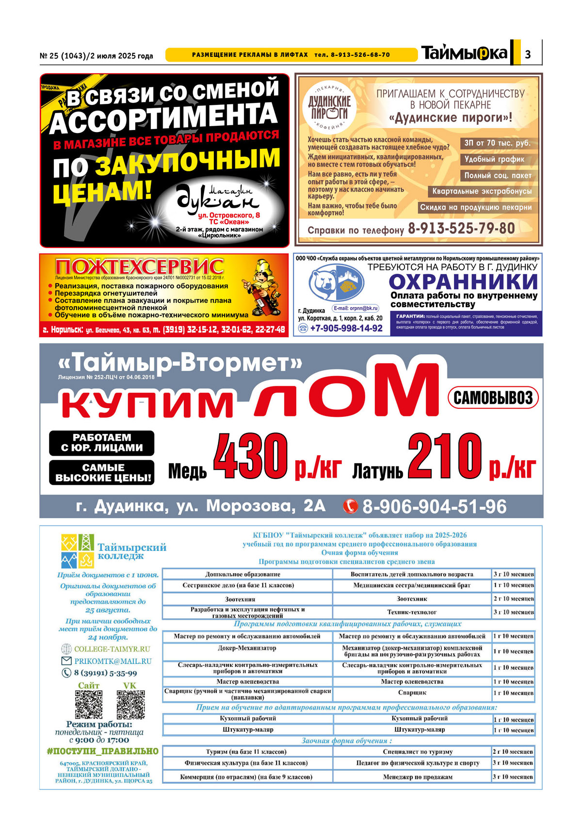 ГАЗЕТА "ТАЙМЫРКА" №1043  02.07.2025