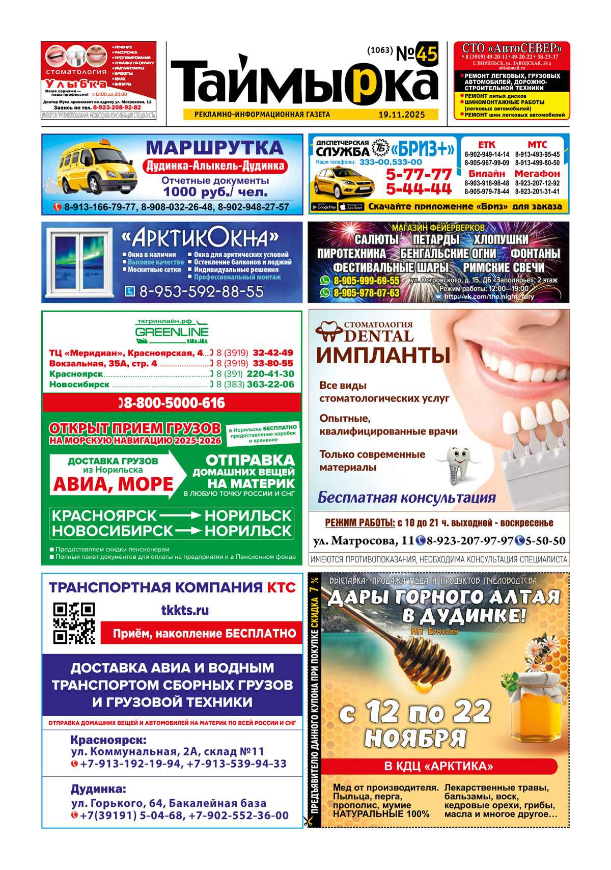 ГАЗЕТА "ТАЙМЫРКА" №1063  19.11.2025
