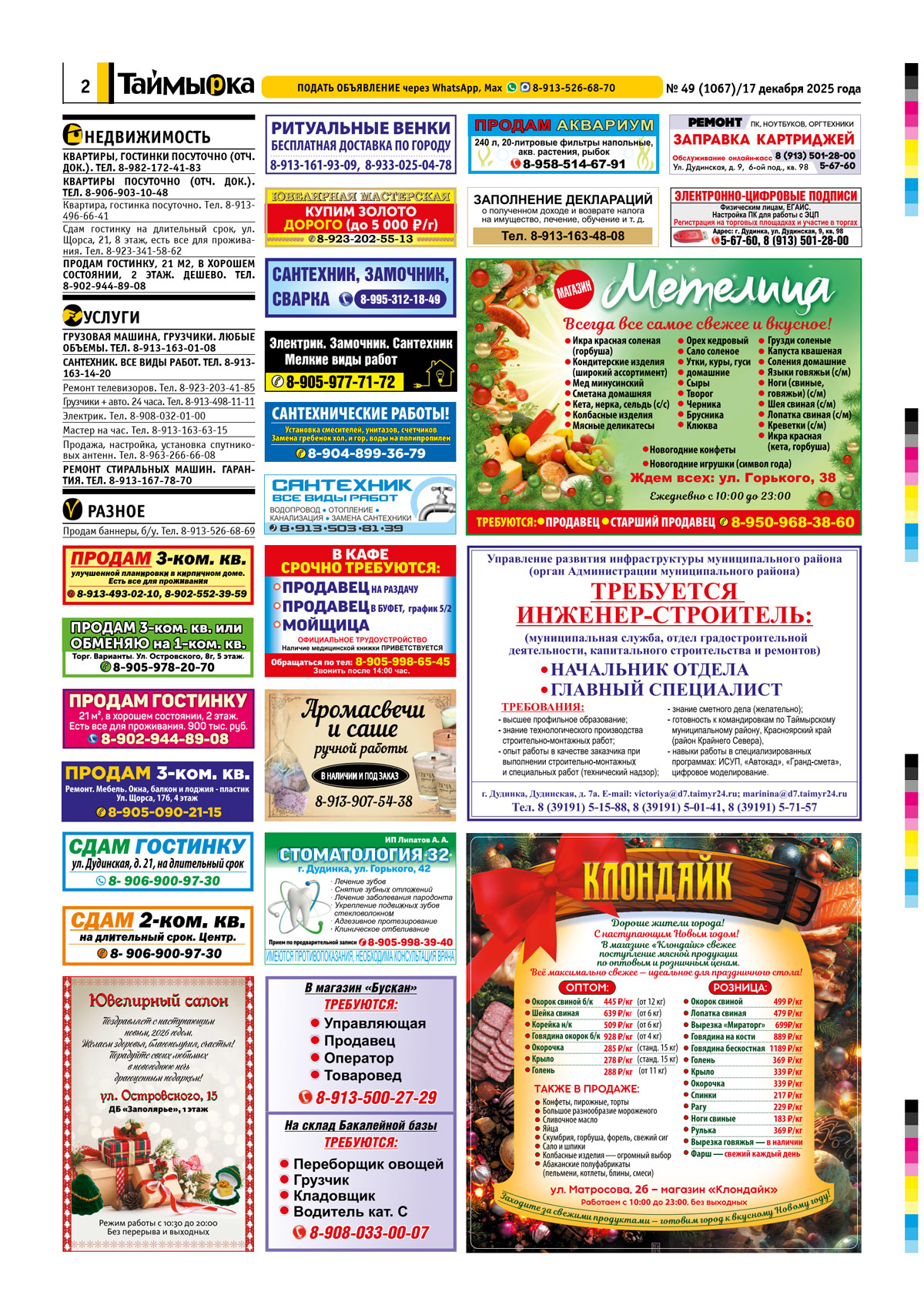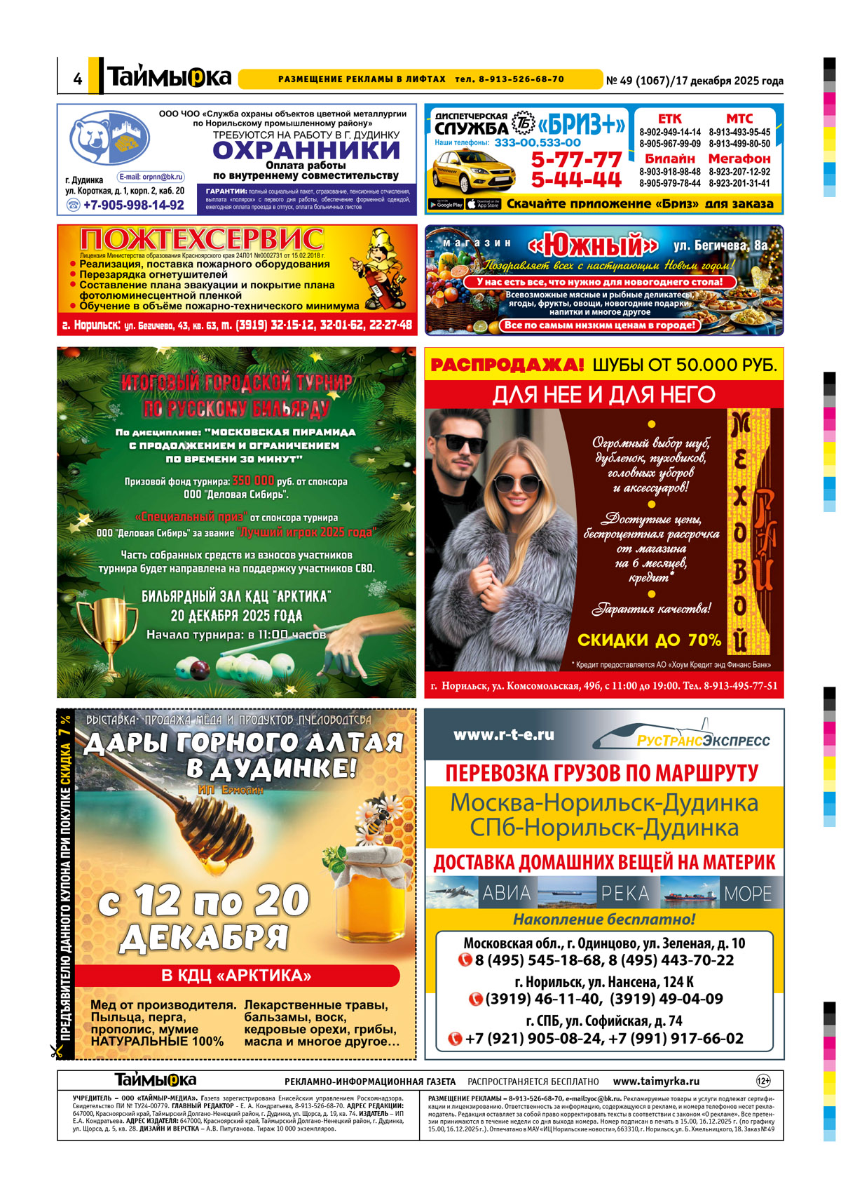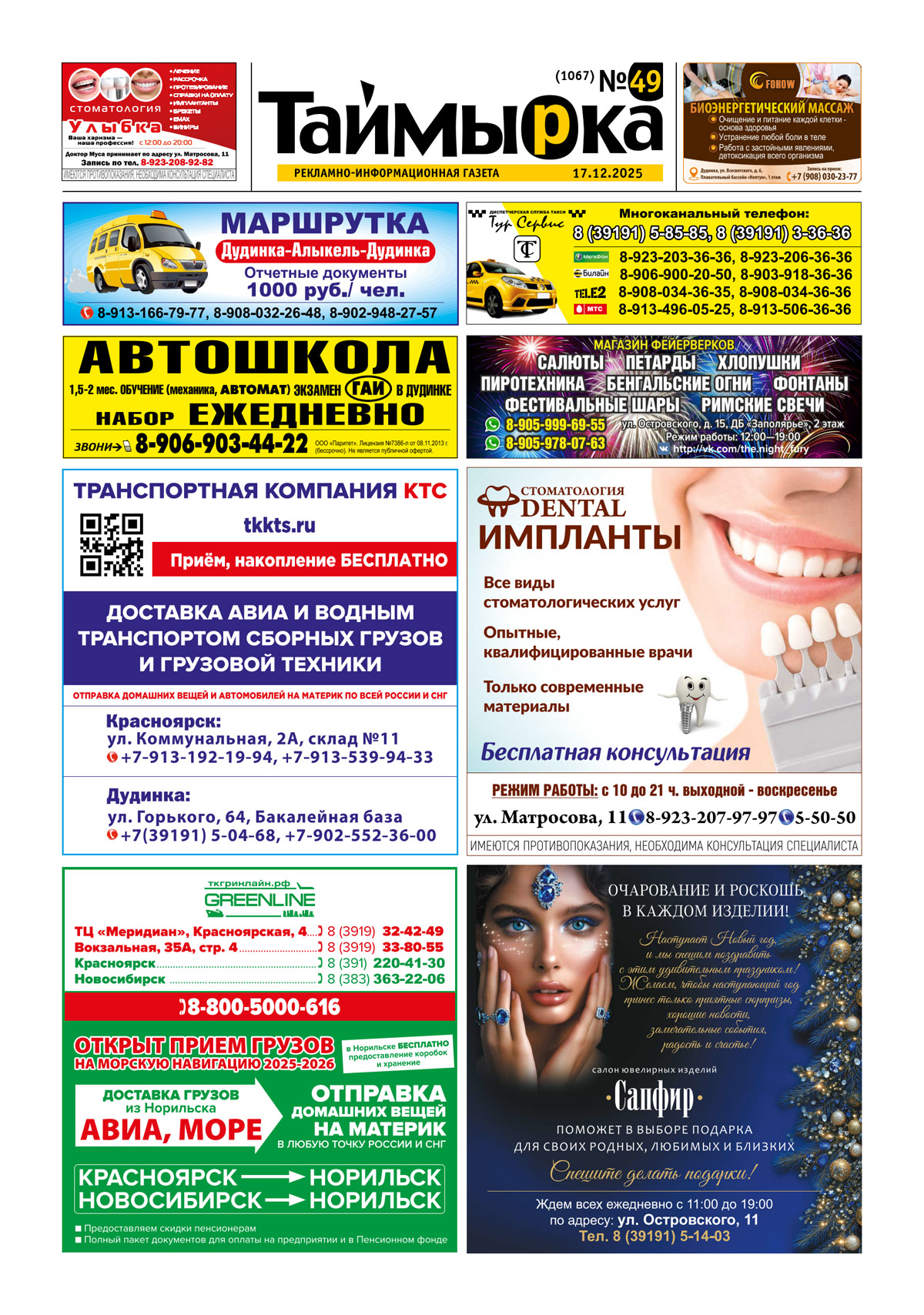 ГАЗЕТА "ТАЙМЫРКА" №1067  17.12.2025