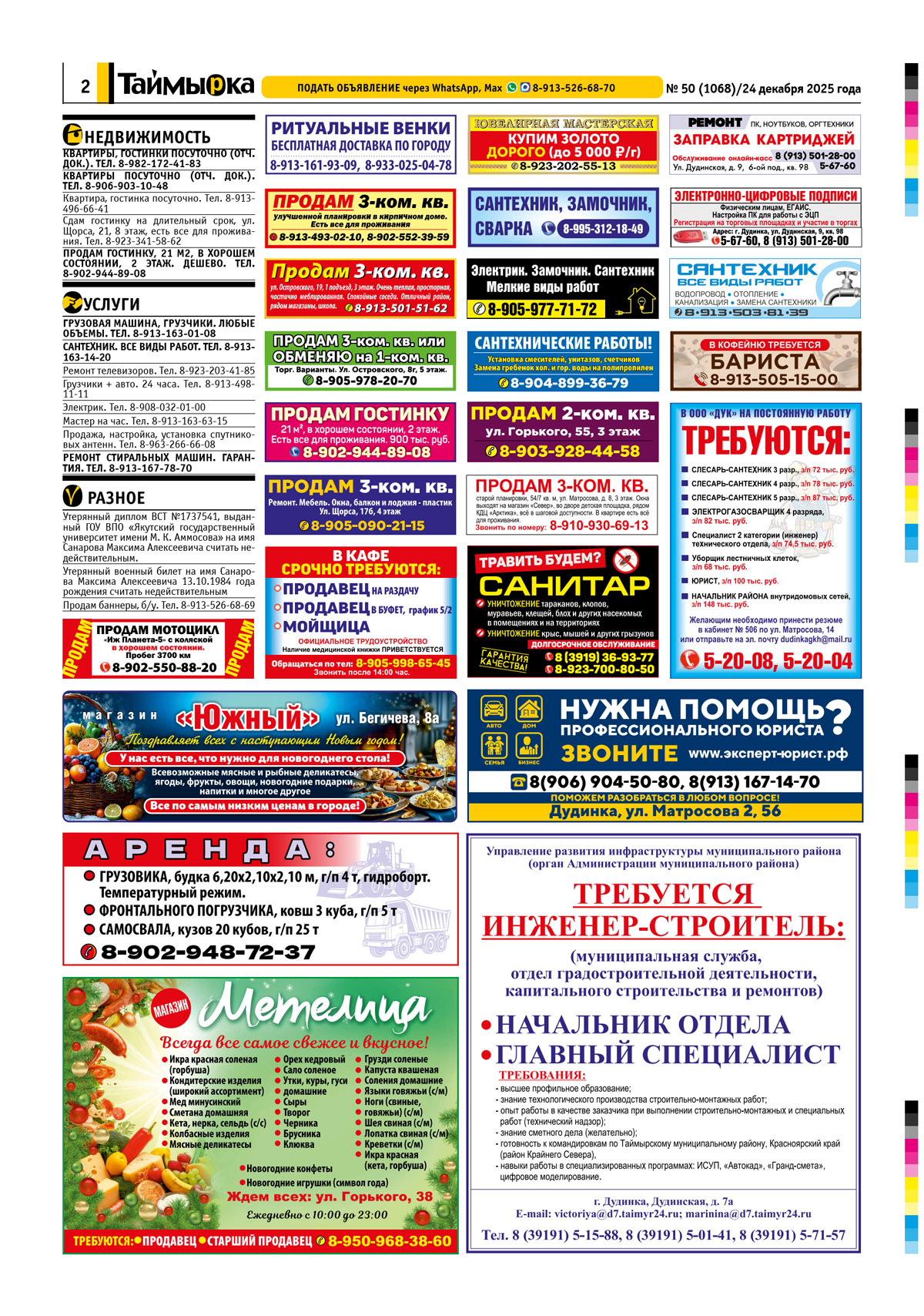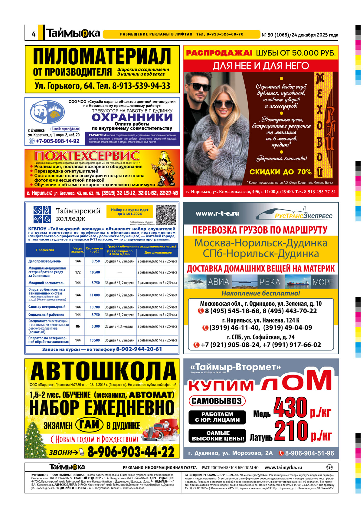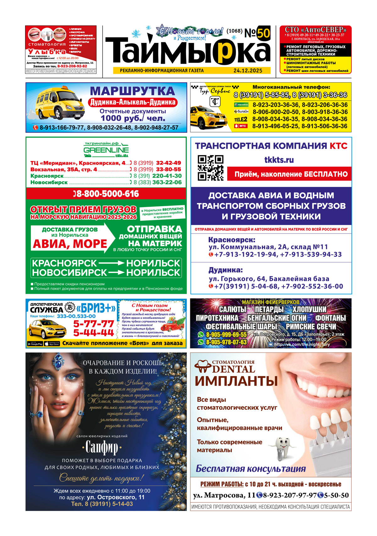 ГАЗЕТА "ТАЙМЫРКА" №1068  24.12.2025