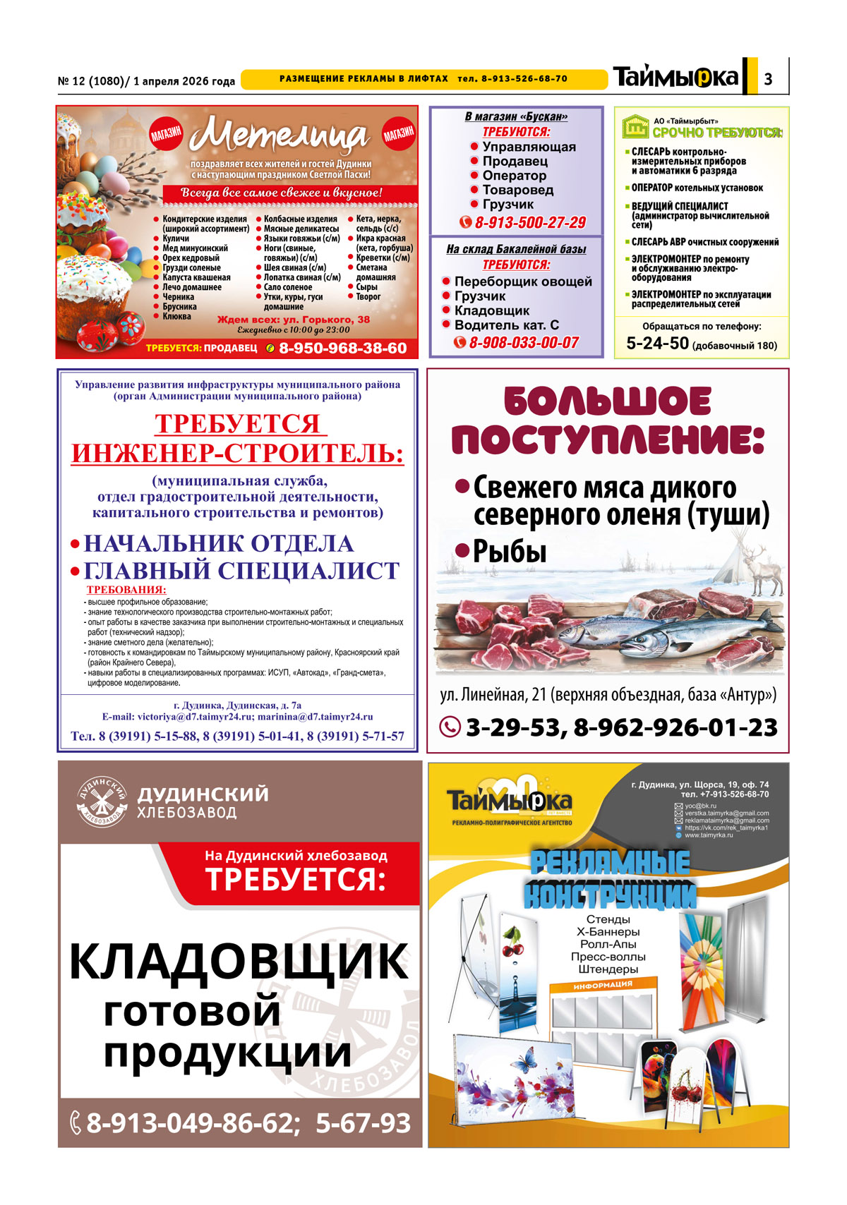 ГАЗЕТА "ТАЙМЫРКА" №1080  01.04.2026