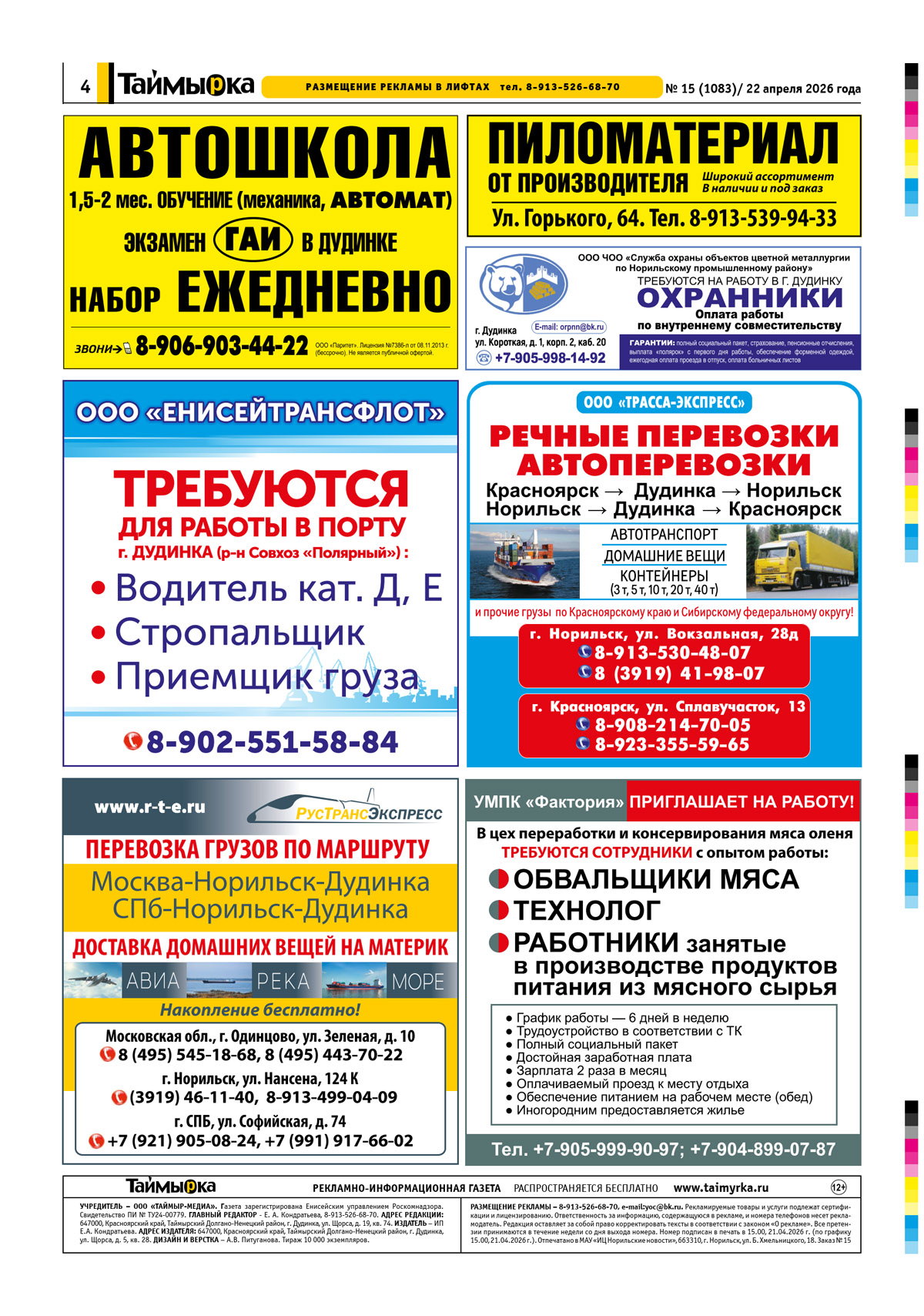 ГАЗЕТА "ТАЙМЫРКА" №1083  22.04.2026